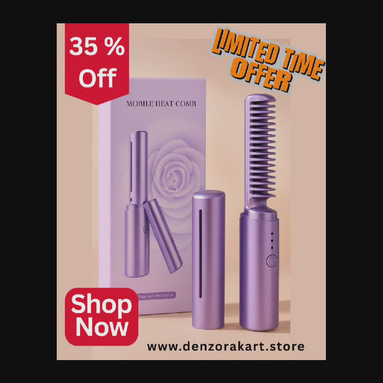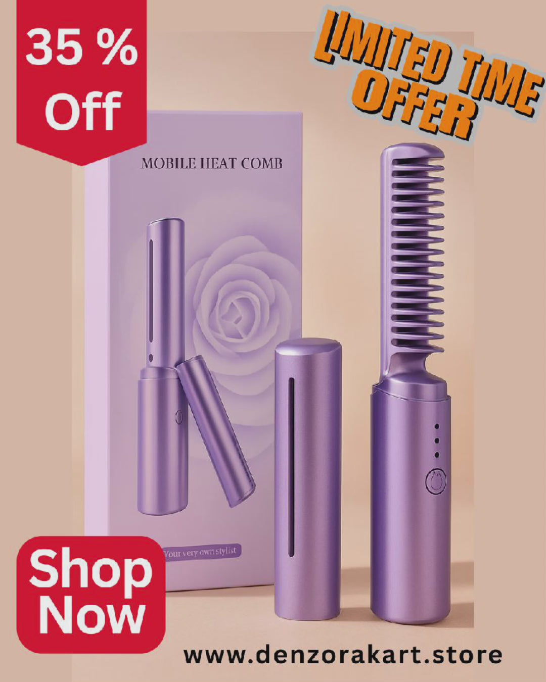 Meneflix Cordless Mini Hair Straightener Hot Comb — rechargeable, travel-ready styling for quick touchups and sleek finishes. This palm-sized hot comb heats up fast and reaches up to 200°C, giving you smooth, frizz-free results for bangs, hairline touch-ups, short to medium-length hair, and beard edges. The cordless design removes outlet dependence so you can style confidently between meetings, flights, or workouts — slip it into a purse or travel pouch and go.