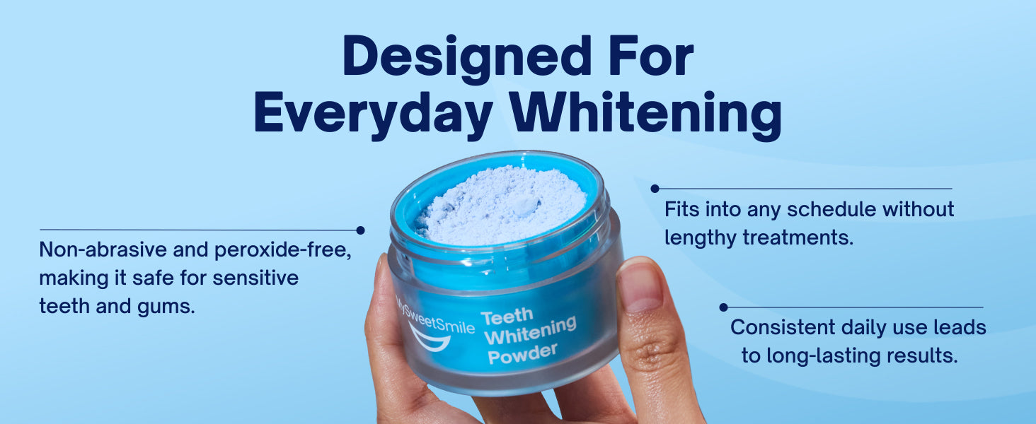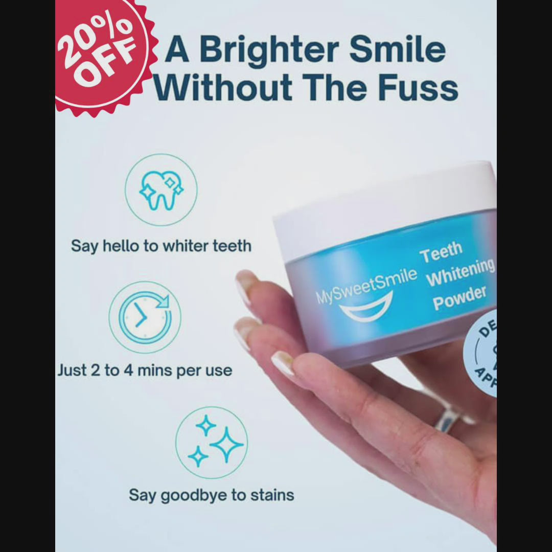 Brush away years of stains and yellowing with MySweetSmile Teeth Whitening Powder. It's time to show off your brighter, more confident smile!